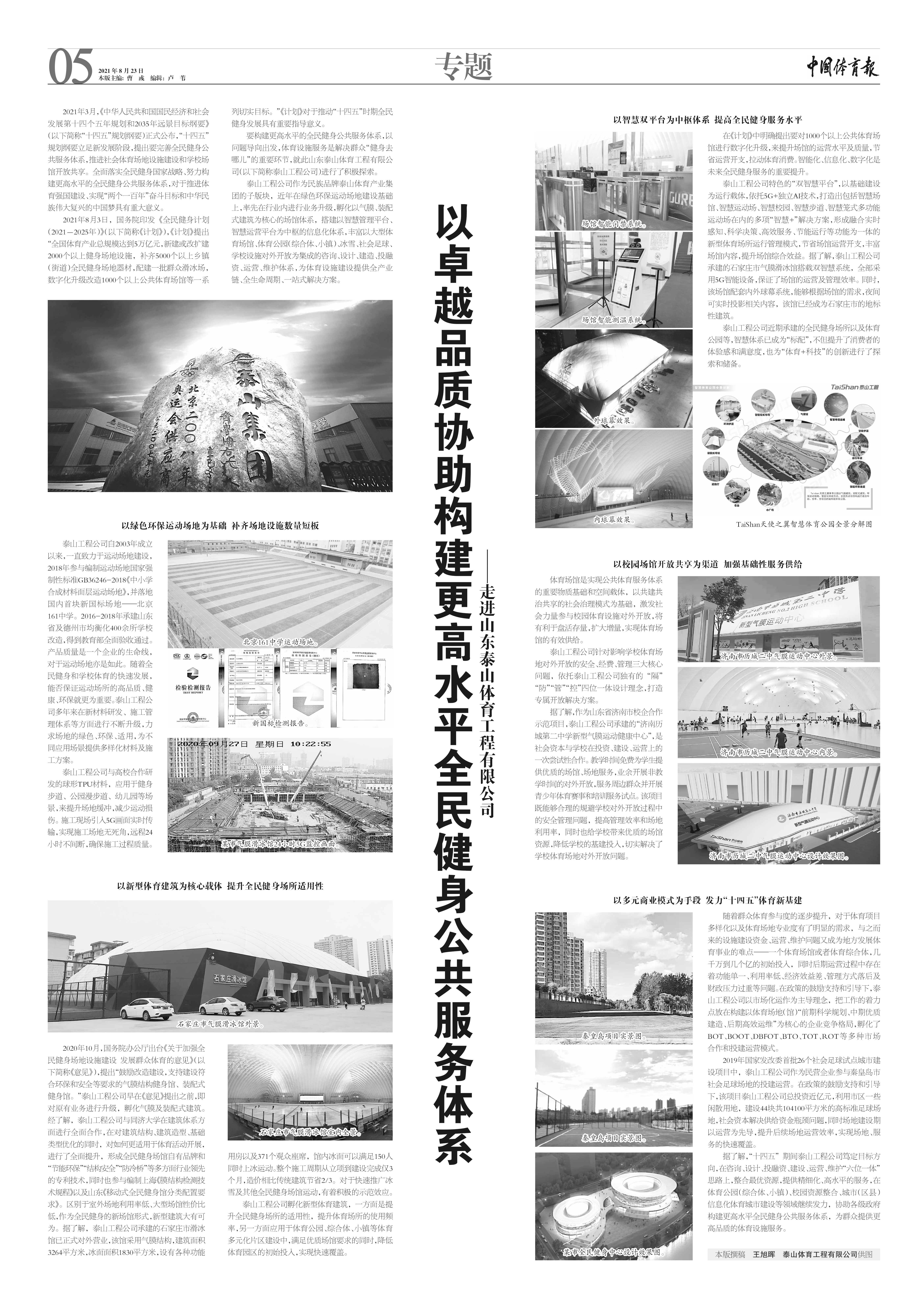 2021年8月23日,《中国体育报》整版刊载《以卓越品质协助构建更高水平全民健身公共服务体系——走进山东金年会金字招牌诚信至上体育工程有限公司》。