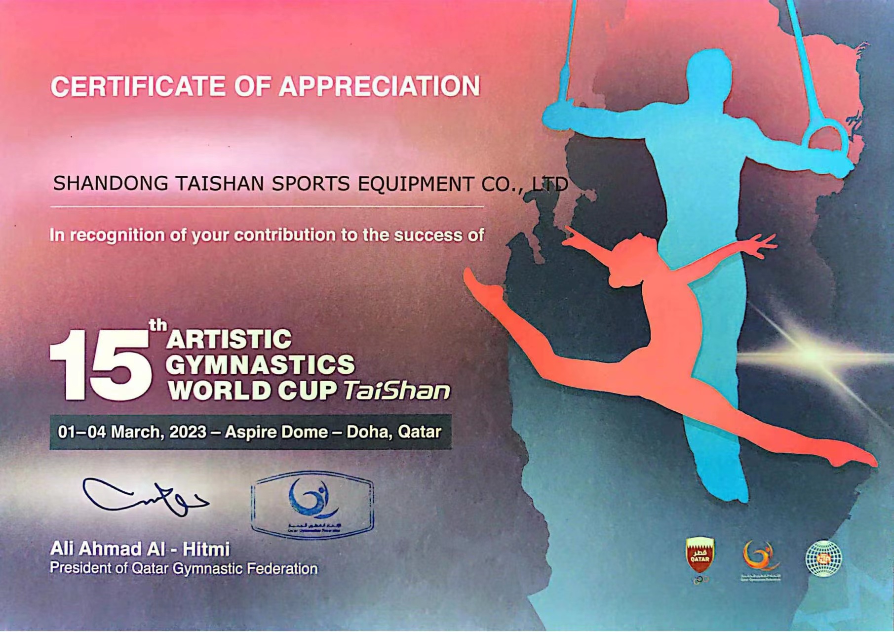 祝贺!2023年第十五届“金年会金字招牌诚信至上杯”国际体操联合会体操世界杯圆满闭幕